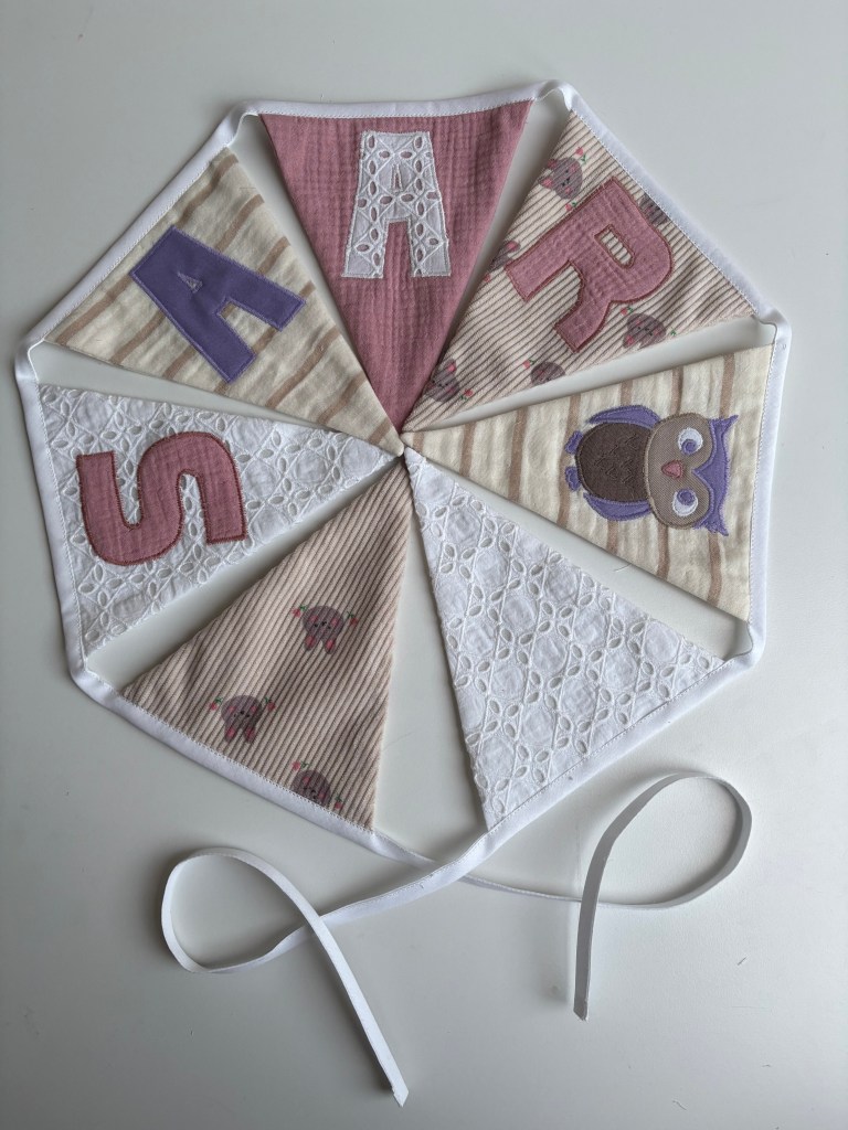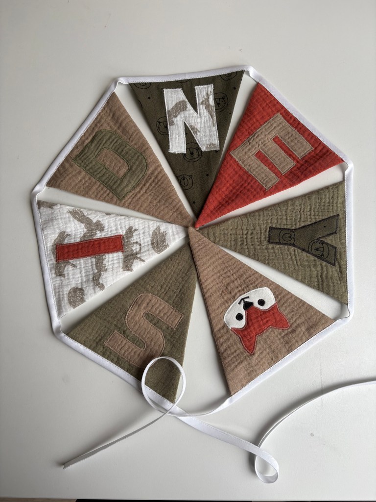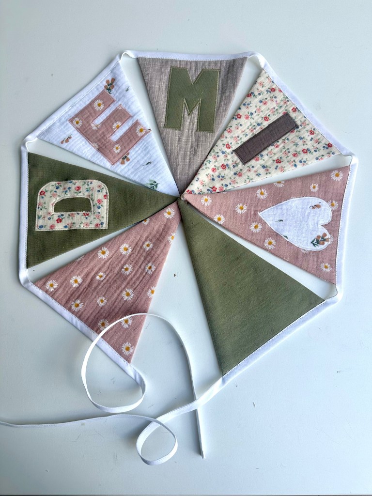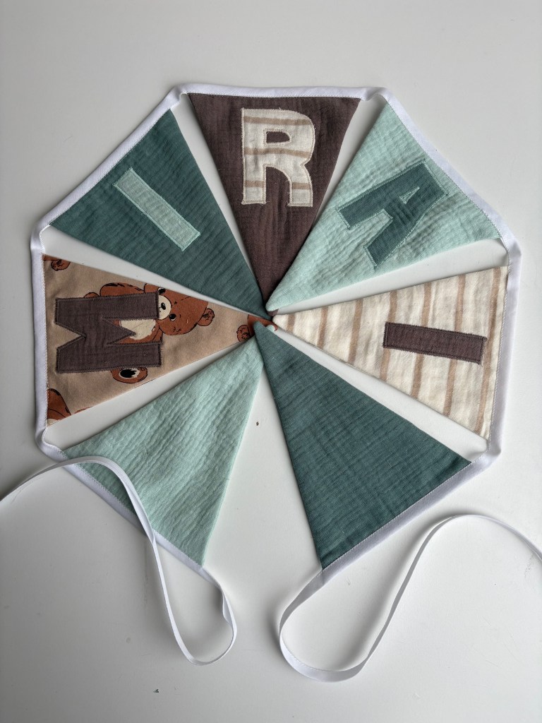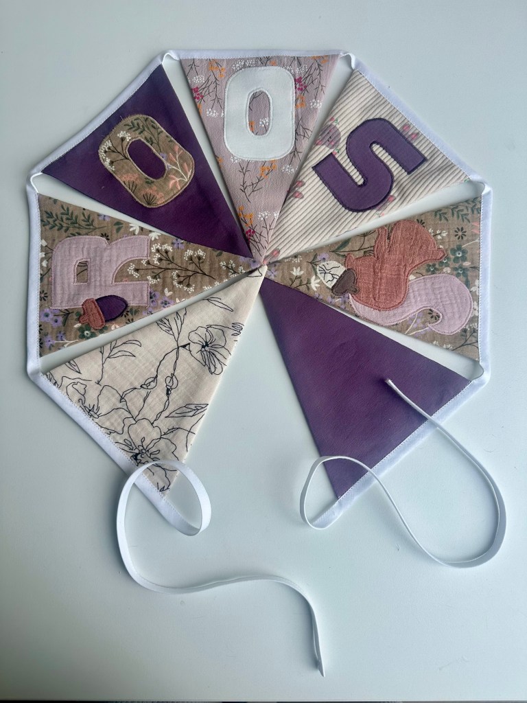 Vrolijke vlaggenlijnen, op maat gemaakt met jullie kleuren, thema en naam.